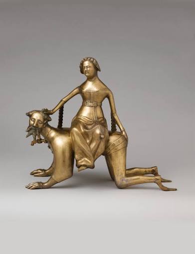 Not knowing where this story is going in part 3, I’m reminded of this statuette. Searching on Google I find the Phyllis and Aristotle trope that was popular at the time.